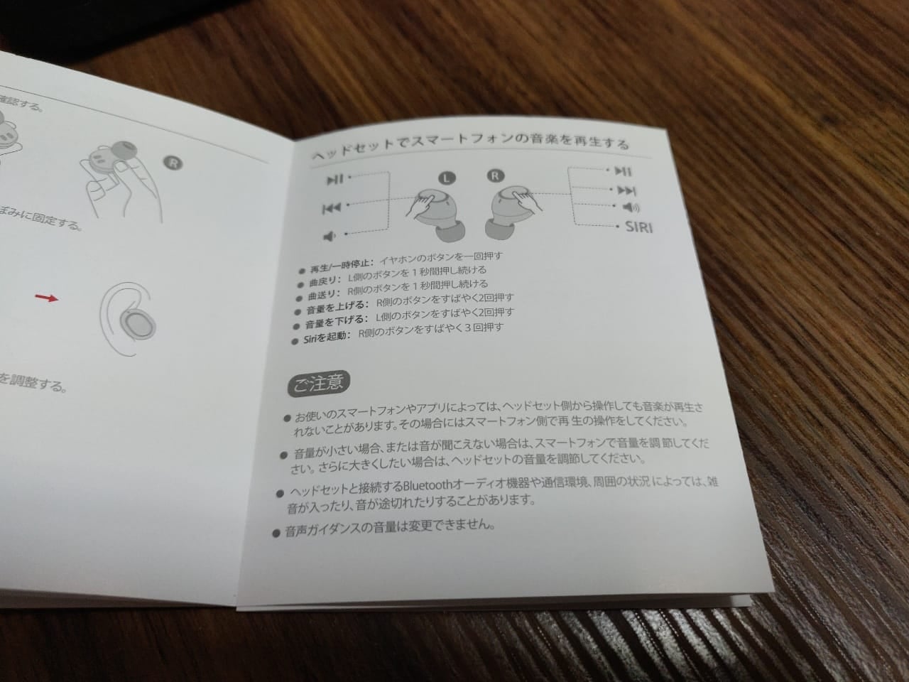 TWSイヤホンはタッチボタンであることが多いのですが、このイヤホンは押し込むタイプのボタン式でした。誤操作を回避できるので、メリットといえばメリットです。しかし、片手で耳に押し込むように押さないといけないので、個人的には好みではないです。