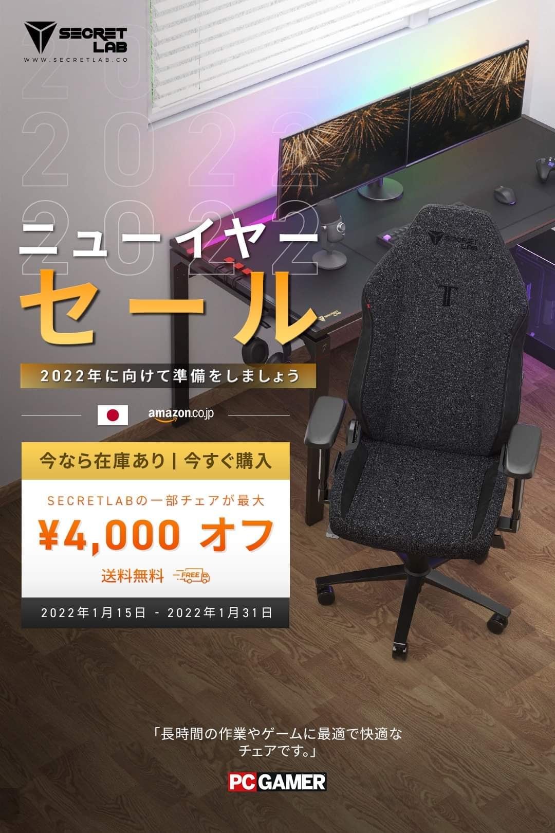 シンガポールのゲーミングチェアメーカーSecretlabが、自社製品を最大4千円オフで購入できる「ニューイヤーセール」を開催します。 Secretlabの日本での販売は、Amazon.co.jpのFBAを通じて取り扱われます。 Secretlab 「ニューイヤーセール」 Amazon.co.jp内Secretlabストアをチェック! Secretlabとは 画像: Secretlab…